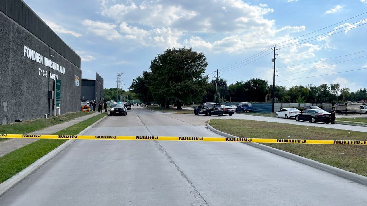 Police were seen gathered near the Houston mechanic shop, where two of the victims were shot and killed on Wednesday. (KRIV)