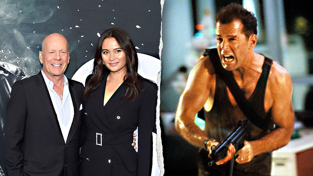 Bruce Willis and his wife Emma Heming Willis are seen here at the SVA Theater on January 15, 2019, in New York City. Heming Willis revealed to Fox News Digital that she first mistook her husband’s dementia symptoms for hearing loss he suffered while filming “Die Hard” in 1988. (Jamie McCarthy/Getty Images; 20th Century-Fox/Getty Images)