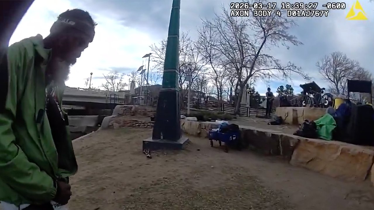 Bodycam video captures the suspect moments before fleeing from officers in a downtown Boulder park, leading to a dangerous confrontation that injured a police officer. (X/@boulderpolice)