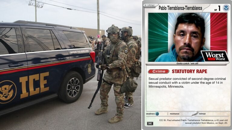 Among those featured on the mocked-up cards were Nery Garcia Linares, a 32-year-old alleged sexual predator from Guatemala who was arrested by ICE Newark on September 18, and Moises Lopez-Zapeda, whom DHS described as 44-year-old “criminal alien” from Mexico who was taken into custody by ICE Houston on September 19.