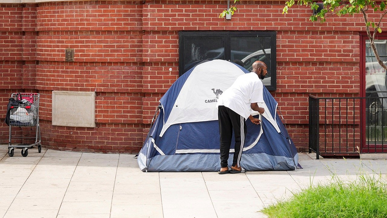 A general view of a homeless encampment near the Inter-American Development Bank, in Washington, D.C., Aug. 11, 2025. (REUTERS/Ken Cedeno)