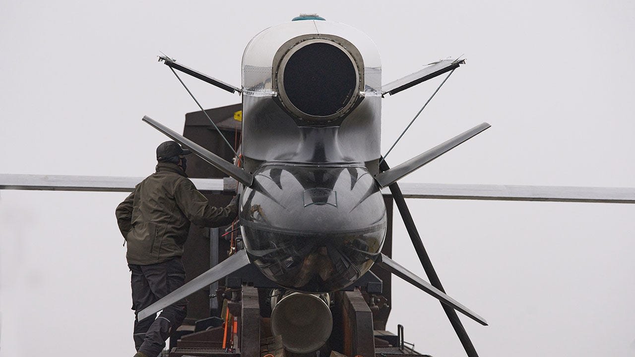 Ukrainian Fire Point’s Flamingo missiles are inspected in the Ukraine on Thursday.  (AP Photo/Efrem Lukatsky)