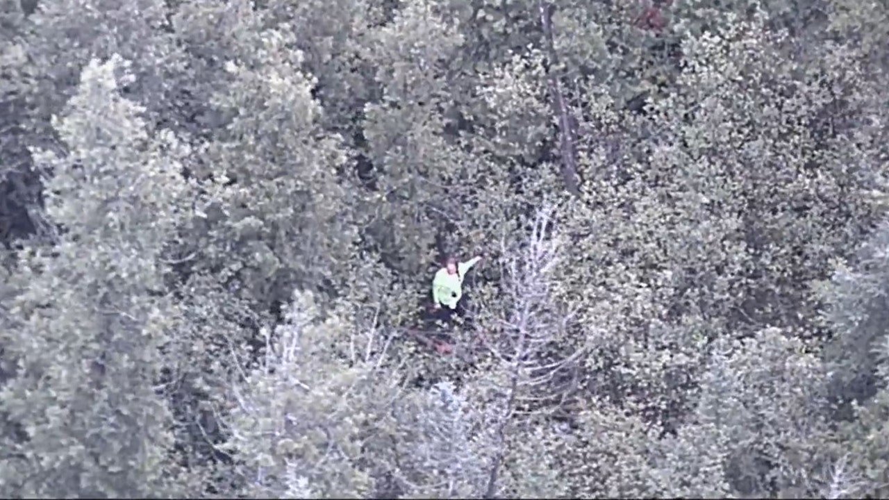 The helicopter crew guided ground teams to the woman’s location, and she was able to walk out of the forest on her own.